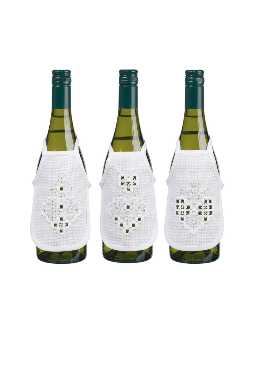- Paquete completo: Incluye 3 delantales para botellas totalmente montados para una aplicación rápida y sencilla de tu bordado acabado.