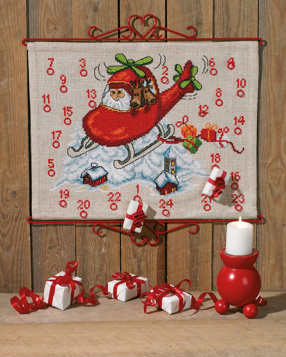 Kit de bordado Papá Noel en helicóptero 50 x 38 cm
