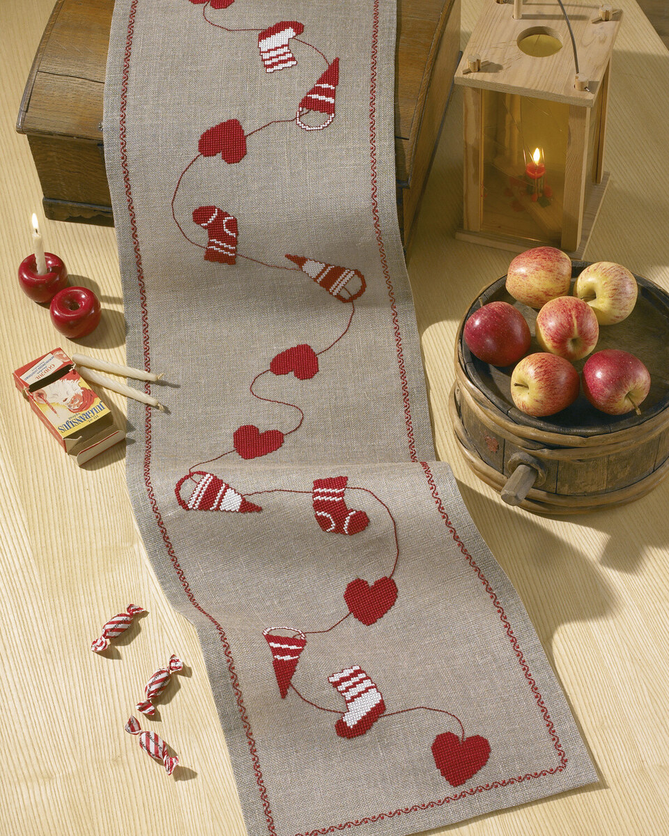 Kit de bordado Camino de Navidad en Natural 33 x 116 cm