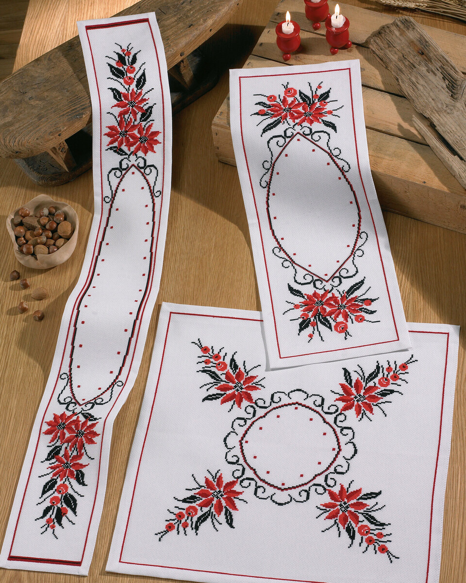 Kit de bordado Estrellas de Navidad rojas 26 x 67 cm