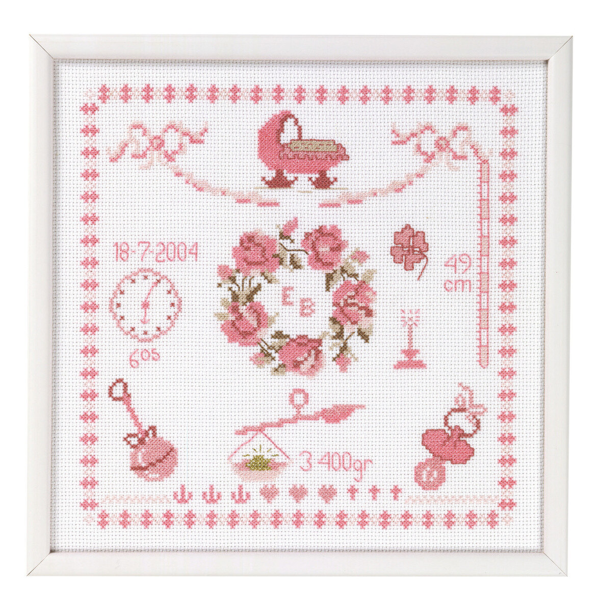 Kit de bordado Recuerdo de nacimiento niña 25 x 25 cm