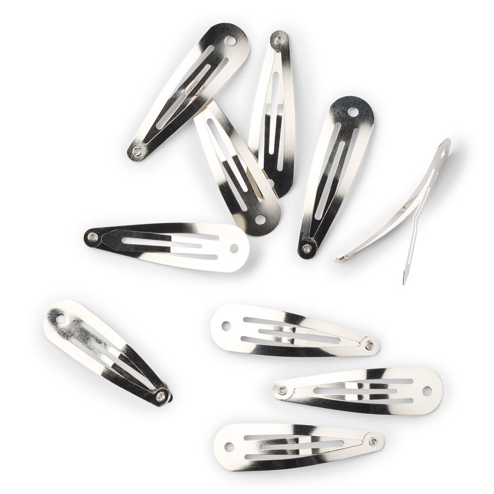Estos clips clic-clac plateados de metal son una opción resistente para proyectos creativos y accesorios de pelo hechos a mano. Su acabado brillante aporta un toque elegante y sencillo, ideal tanto para el día a día como para ocasiones especiales.