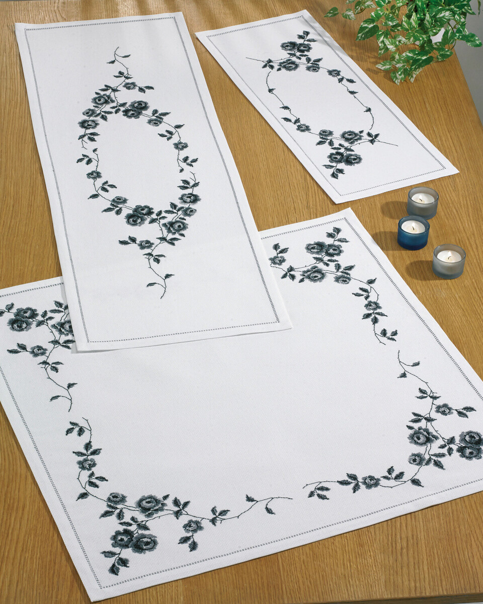 Kit de bordado Rosales trepadores en gris 66 x 66 cm