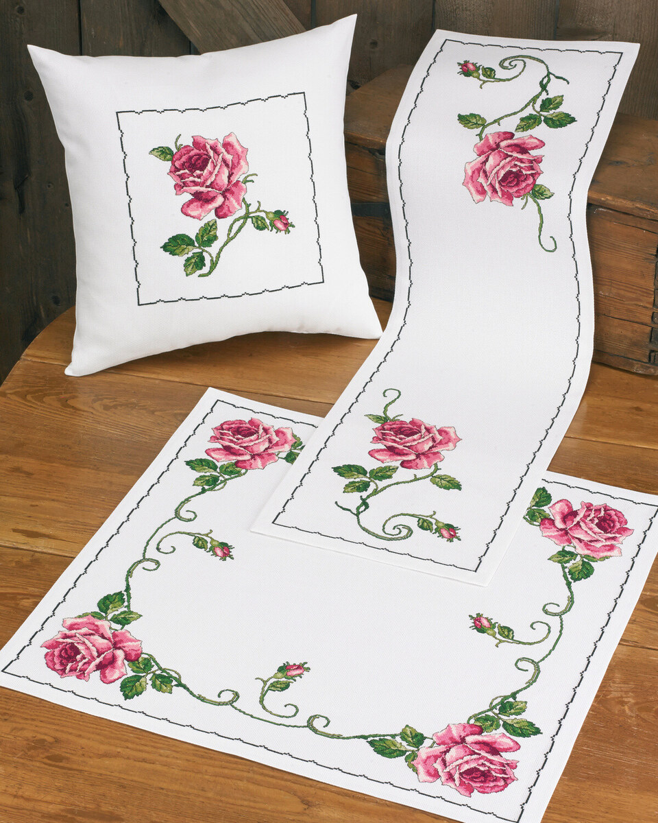 Descubre la delicada belleza de un motivo clásico de rosas con el set de bordado "Rosen". Esta hermosa obra en dimensiones de 29x98cm captura la esencia de la elegancia natural con sus suaves flores en colores pastel y hojas detalladas. Perfecto tanto para principiantes como para entusiastas del bordado experimentados, este set será un adorno en cualquier hogar.