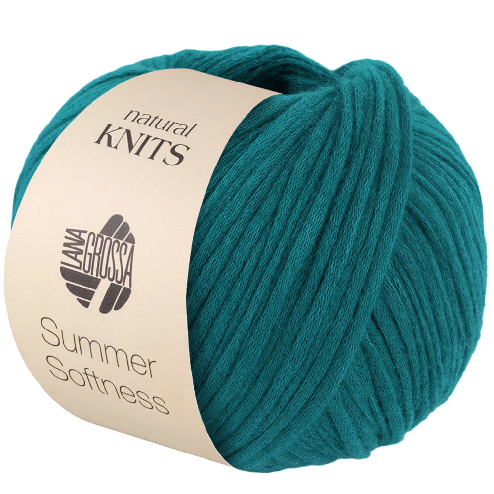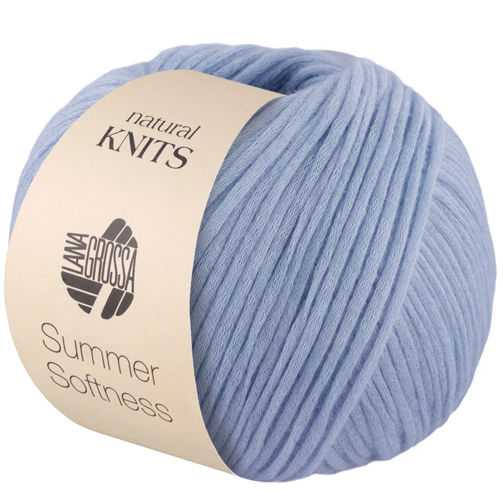 Lana Grossa Summer Softness es un hilo ligero y suave que combina materiales naturales con una sensación lujosa. Con un 80% de algodón y un 20% de lana merino, este hilo tiene una estructura única donde un fino hilo de algodón está rodeado de fibras de merino aireadas. El resultado es una calidad elegante, ligera y transpirable que se siente agradable sobre la piel.